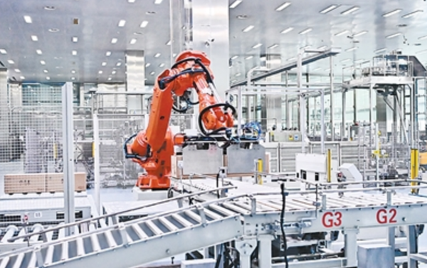 西省南昌市积极引导企业布局智能制造设备,让科技赋能生产全链条、全领域,通过引进搭载智能制造数字“大脑”平台、智能机械臂、自动导引车、工业互联网等新设备和系统,推动企业提升竞争力和发展能级。图为华润江中湾里制造基地(江中药谷)车间内,智能机械臂进行作业。